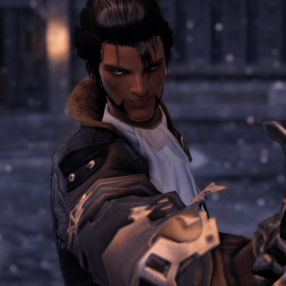 Age: 31(By Endwalker)Sexuality: Bisexual (leans towards women)Relationship Status: SingleHair Color: Black and WhiteEyes: Honey BrownHeight: 6'4Body: Lean BuildOccupation(s): Adventurer, Novice CulinarianClass: Bard, Dragoon, Machinist, Monk, Paladin, Dark Knight