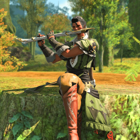 Kusan was born in to a small noble merchant family of Gridania: the Ra-Yahk's. Orianne Ra-Yahk, Kusan's mother who hailed from Ishgard and mastered her skills in alchemy. Dalaux Ra-Yahk, the father and current lord of the house. Vallerin, Kusan's older brother and heir to the family fortune, Mourinette, Kusan's beloved older sister, and Kusan himself. The family conducts business in arms dealing. From swords, shields, lances, axes, and much more.Dalaux handled the business the products being crafted, shipped, and sold to each city state. The efficiency of the of the Ra-Yahk family was fairly known across Eorzea. Well known enough to attract business from another malefactor that would pay handsomely under the table further pushing the wealth of the family.Vallerin caught wind of his father and suddenly vanished without a trace as though he never existed. The future and heir of the household then fell to Kusan's shoulders, but the young Elezen dreamt of traveling the land of Eorzea and beyond and the adventure laying in wake. Unfortunately, his father did not support the dreams and claimed only "savages" partook in such indulgence.Mourinette, upset by the treatment of her youngest brother and his dreams, proposed to take up the mantle of the Ra-Yahk lordship. She was training in the Lancer's Guild to get recognized by the dragoons of Ishgard as she aimed to become the Azure Dragoon like the hero she looked up to, Ser Alberic. As she did, the Ra-Yahk family name spread as she matched the strength of the dragoons before her. Dalaux used this newfound popularity in his favor as a means progress the family fame further.One day from one of their frequent visits in Ishgard, Orianne and Dalaux came back with an unexpected surprise...a child. A small, fair skin toned, brown hair Elezen named Gaimont. He was a child from the Brume of Ishgard that lost his family one from the dragon attacks. From that day forward, he would be an adopted son of the Ra-Yahk family. Kusan welcomed his new step brother, but Gaimont did not yearn to do so with him. He showed no compassion to make relations with his 'siblings' and often accompanied Dalaux to learn more of the family and the business that brought it about.Then one day in the middle of the night, Mourinette was brought to her parents room where awaited Dalaux and Orianne. Whatever was discussed in that room caused Mourinette to storm out and crying. Not long after, she and Kusan robed in a cowl, ready to walk out on their home. Before they could make it out, they were encountered a familiar face and in just an instant, Mourinette fell to the ground bleeding out. Kusan screamed as the figure swiftly ran away while dropping a murder weapon. Mourinette smiled at her beloved brother one last time before the life faded from her eyes.Dalaux and Orianne showed up along with Gaimont leading them. After seeing the weapon near Kusan and Mourinette's blood on his hands, they accused him of killing his own sister. Dalaux considered to do away Kusan himself, but not before taking away more away from him. Kusan was taken to somewhere hidden in the manor where no sound escaped. Hours went by...Mourinette's body tended and taken away and Gelther, Kusan's retainer, carried Kusan's unconscious body out of the manor and into the Shroud.Gelther brought Kusan to the East Shroud and laid his body down carefully before he made his way back to the Ra-Yahk home. Kusan's smell attracted a crowd of Ziz who hollered at their next meal, surrounding Kusan as he woke from his senseless state. Hearing the hollering, Kusan tried to run, but could only see black from the night. He curled up crying and calling for help. Before the Ziz could get a bite on the elezen child, they were struck with lightning from afar and were driven away.Frixio, leader of the Sylphs, and others came to the aid when the got too close to their home of Little Solace, Frixio then noticed boy crying on the ground. He hovered above him and called out to the elezen. Kusan got himself up, trembling with fear, not knowing where to go, remaining silent. Frixio examined the boys and to look into his eyes to only see white. Kusan was blinded. His vision taken away from him and small holes in his neck as a needle penetrated his skin. Frixio lead Kusan back to Little Solace where he comforted the boy who was still in a catatonic state. Being like this for days on end, Kusan came to the reality what he had lost and what he could do. He only had one choice...He stayed in the Sylph village and where he was taught how to use aether to see and induce lightning magic, but only could see blotches of people and bits of the aether in the environment around him, though it takes a toll on his life till this very day. Kusan taught himself the bow thanks to a certain bard within the Shroud, jumped and climbed trees, hunted Garleans who threatened Little Solace and fought with the Touched Ones. Seventeen springs pass and Kusan made a name for himself amongst the sylphs and other who journeyed to through village. He was "The Walking Sylph."